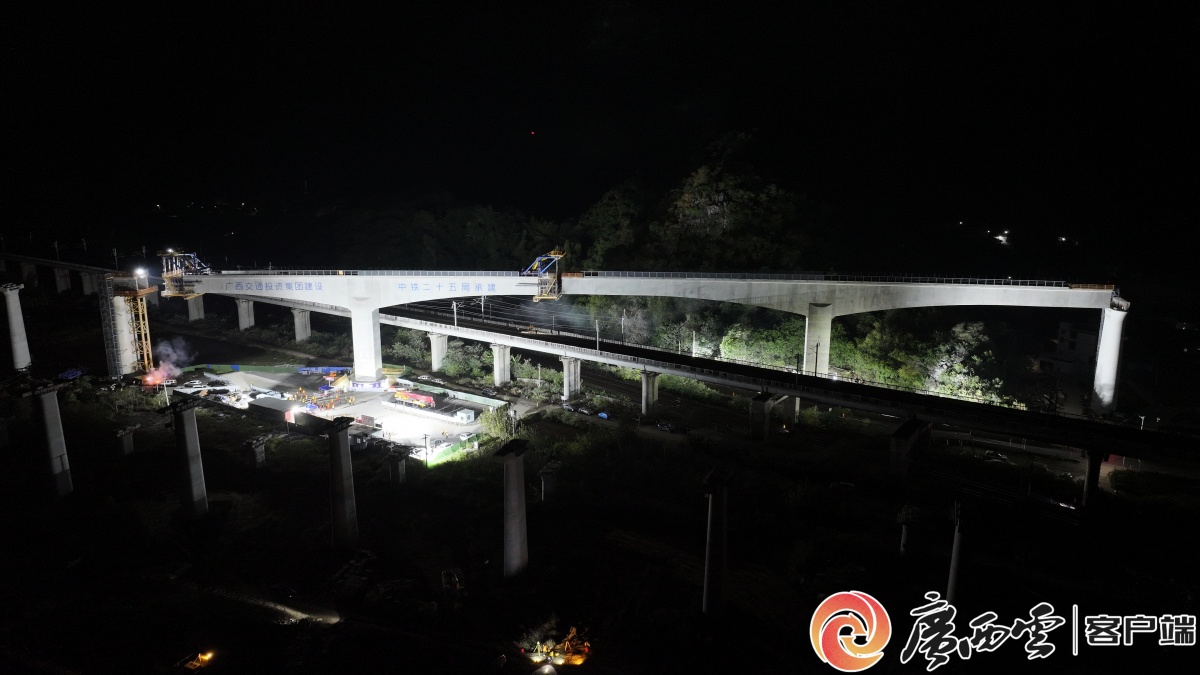 11月25日凌晨4时许,由广西交通投资集团投资建设、国铁南宁局集团代建、中铁二十五局承建的柳梧铁路进德站段客车上行线白山村特大桥成功转体,柳梧铁路建设迎来突破关键瓶颈的标志性节点。