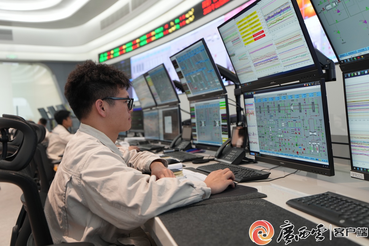 国能广投北海能源基地运行人员正在监视机组运行数据。记者 刘冬莲 摄