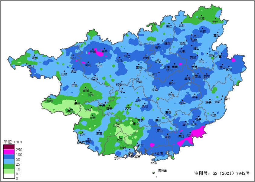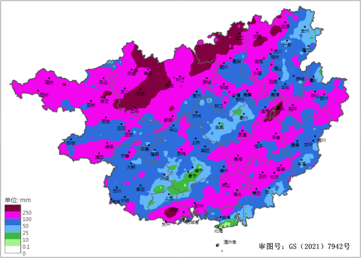 2025年6月15日20时-6月22日20时广西累计雨量分布
