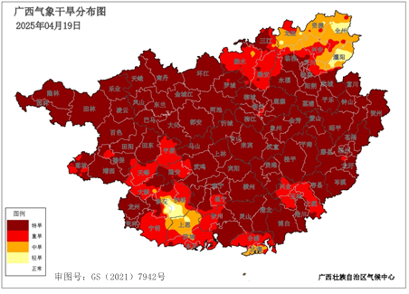 2025年4月19日广西气象干旱分布图