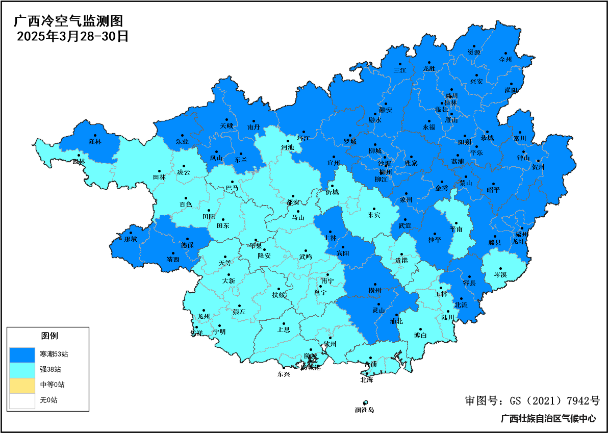 2025年3月28-30日广西冷空气监测