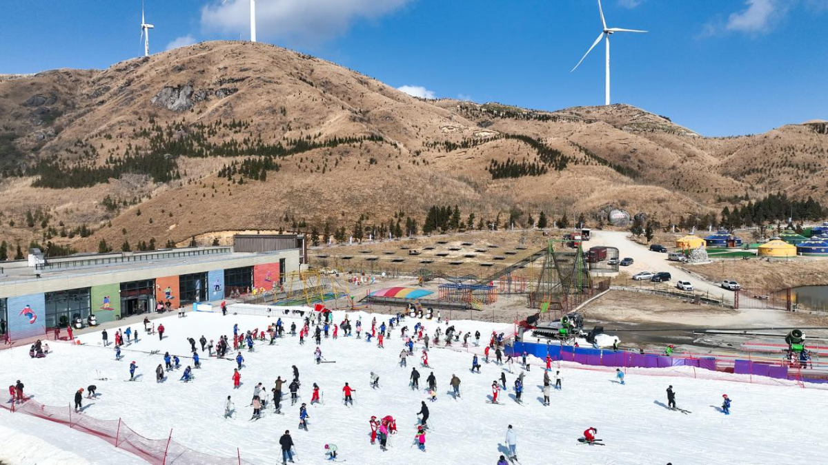连日来,广西桂林全州天湖滑雪场银装素裹,迎来客流高峰。众多游客齐聚于此,在雪道上畅快飞驰,享受冰雪乐趣。