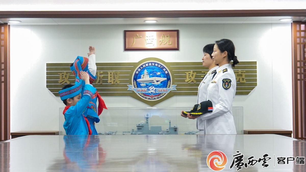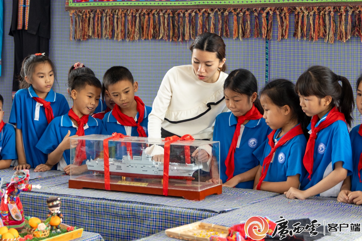 在校园里,孩子们提起广西舰,语气里满是自豪:“以我们广西命名的军舰在远方守护家国,我们觉得特别骄傲,也想把心里话说给海军哥哥姐姐听。”