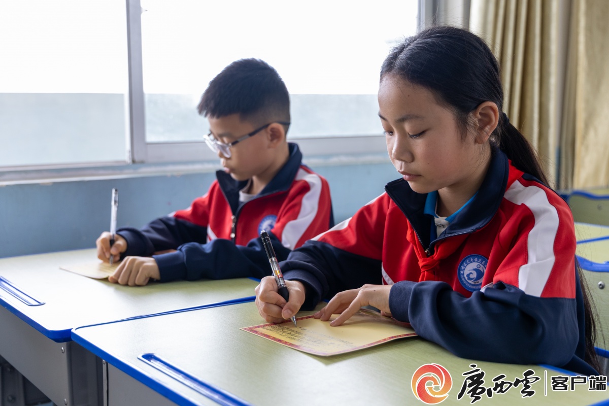 庆乐小学的学生写信给广西舰官兵。广西云-广西日报记者 凌鹏 摄