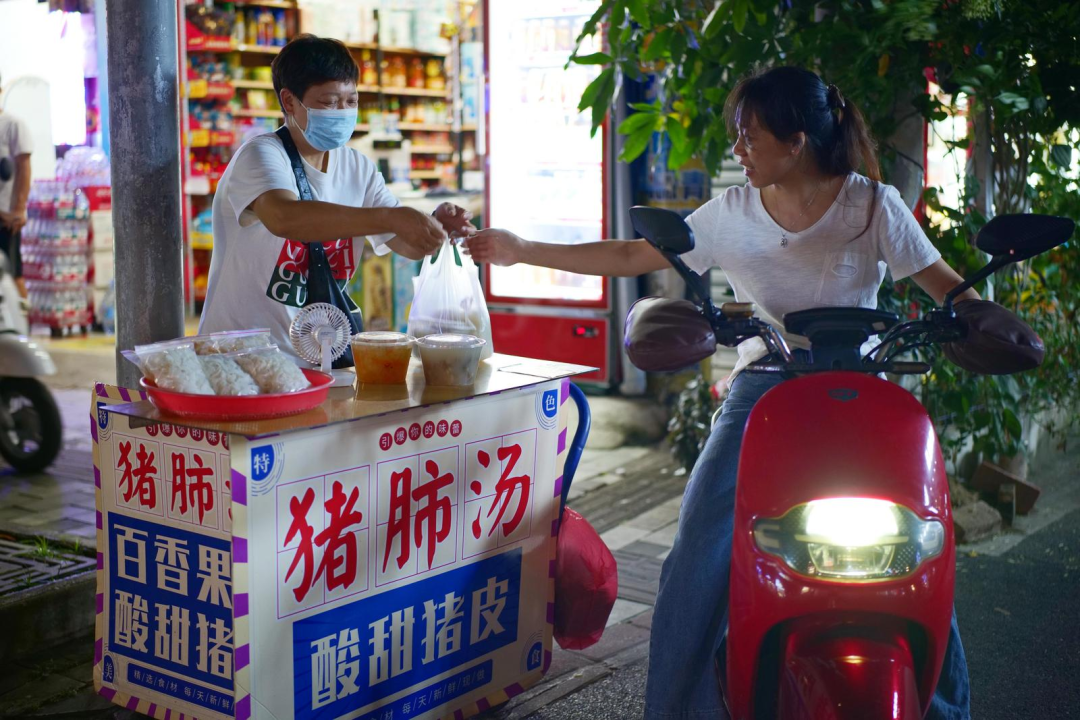 吴艳华在“潮汐摊点”售卖猪肺汤。劳文静 摄