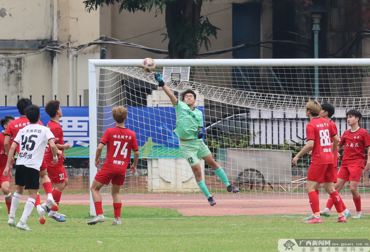 下半场比赛,两队全力以赴追逐比分优势,场上攻防节奏明显加快。海城区队在中场完成一次漂亮的拦截后迅速发动反击,74号球员张芝亮高速插上,接队友直塞球后形成单刀之势,面对出击的门将冷静推射得手。两球落后的江南区队仍未放弃,连续通过边路传中制造威胁,但海城区队门将发挥稳健,多次将对手的射门拒之门外。最终,海城区队以5:0的比分客场大胜江南区队,凭借小组赛不败的战绩提前锁定桂西赛区出线名额。