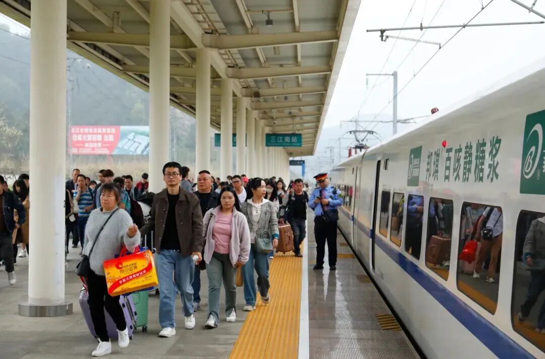 三江南站站长叶燕渗说:“每到采茶季,许多旅客专门乘高铁前来体验采茶制茶,茶园观光、侗族文化展演等文旅项目也日益火爆。”